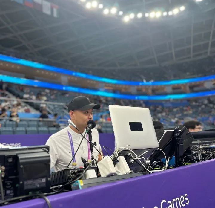 在亚运会期间,阿亮在篮球馆的主要工作在PA、MC、DJ的身份中来回切换,有时候还会兼职,“国内顶尖的团队都在这儿了,有常年为国家队服务的老师,有全国PA、MC、DJ播报的鼻祖。这一次服务亚运会,有幸在这国内第一梯队团队里有自己的名字,快乐和压力共存。”
